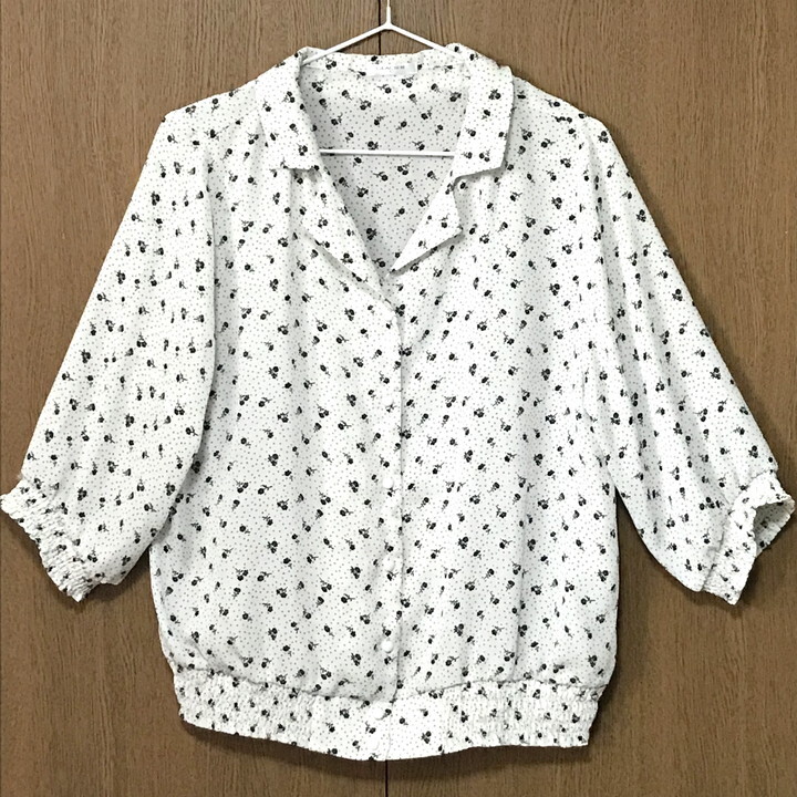 > ■未使用に近い■ GLACIER 花柄 フリル袖 ブラウス Lサイズ 開襟シャツ 五分袖 ドット フェミニン レトロ カジュアル レディース トップス