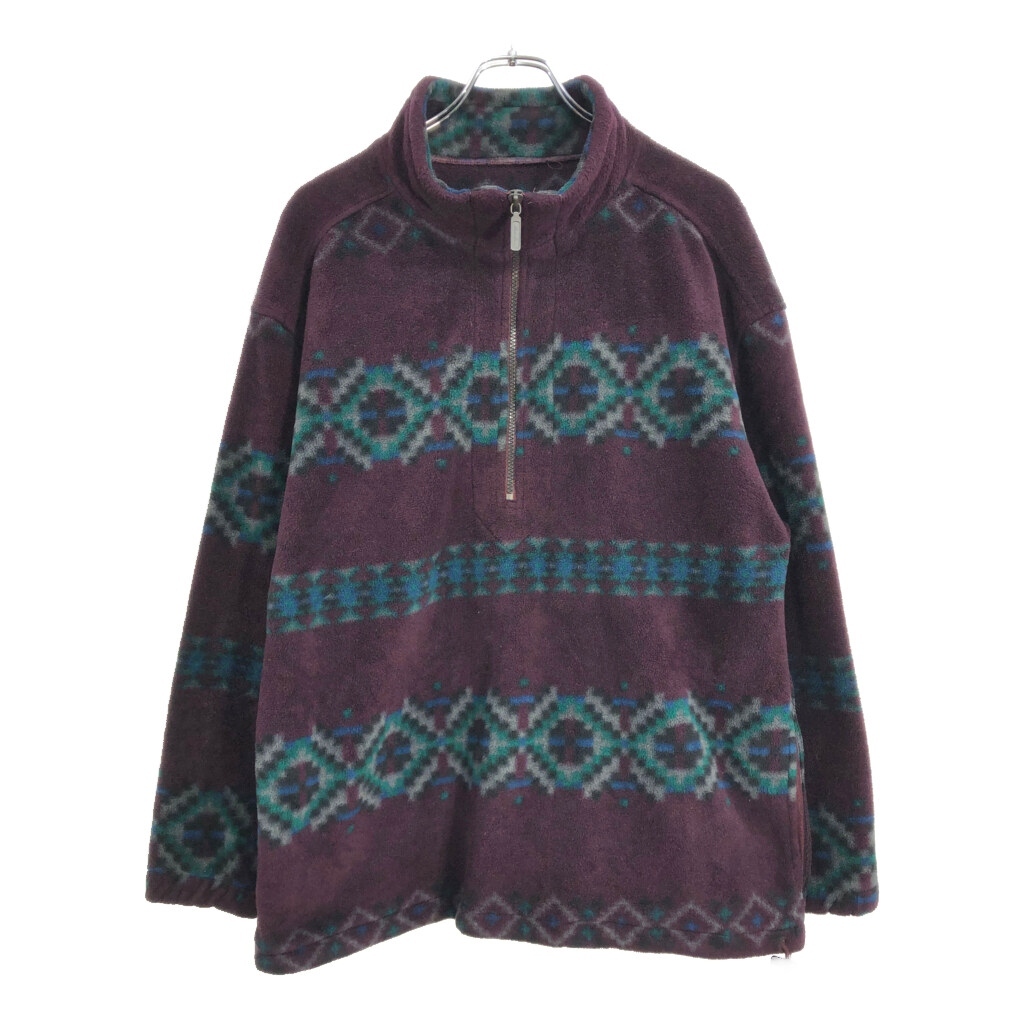 - 00年代 Eddie Bauer エディーバウアー ハーフジップ フリースジャケット 総柄 パープル(メンズ S)中古 古着 U4703