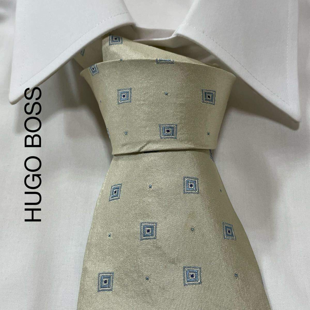 > HUGO BOSS ヒューゴボス パターン柄 ジャガード シルク ネクタイ イタリア製 ライトベージュグレー TG1838