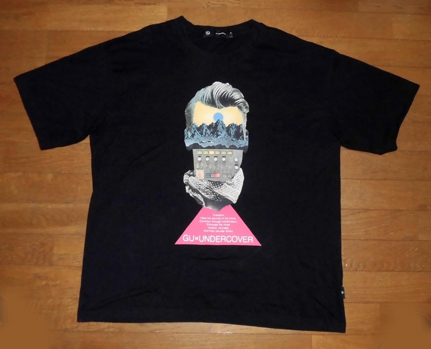 > GU X UNDER COVER ジーユー アンダーカバー コラボ Tシャツ ビッグ グラフィック 半袖 厚手 コットン BLK XL USED 美品