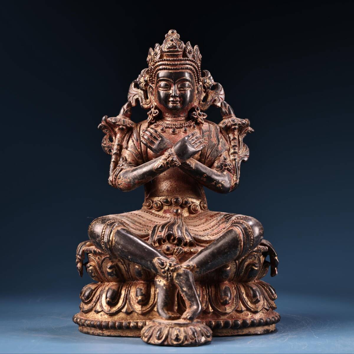 - 蔵友旧蔵出 銅製 泥金 藏傳金剛總持像 貴重品 置物 古賞物 密宗密教 供養品 仏教美術品