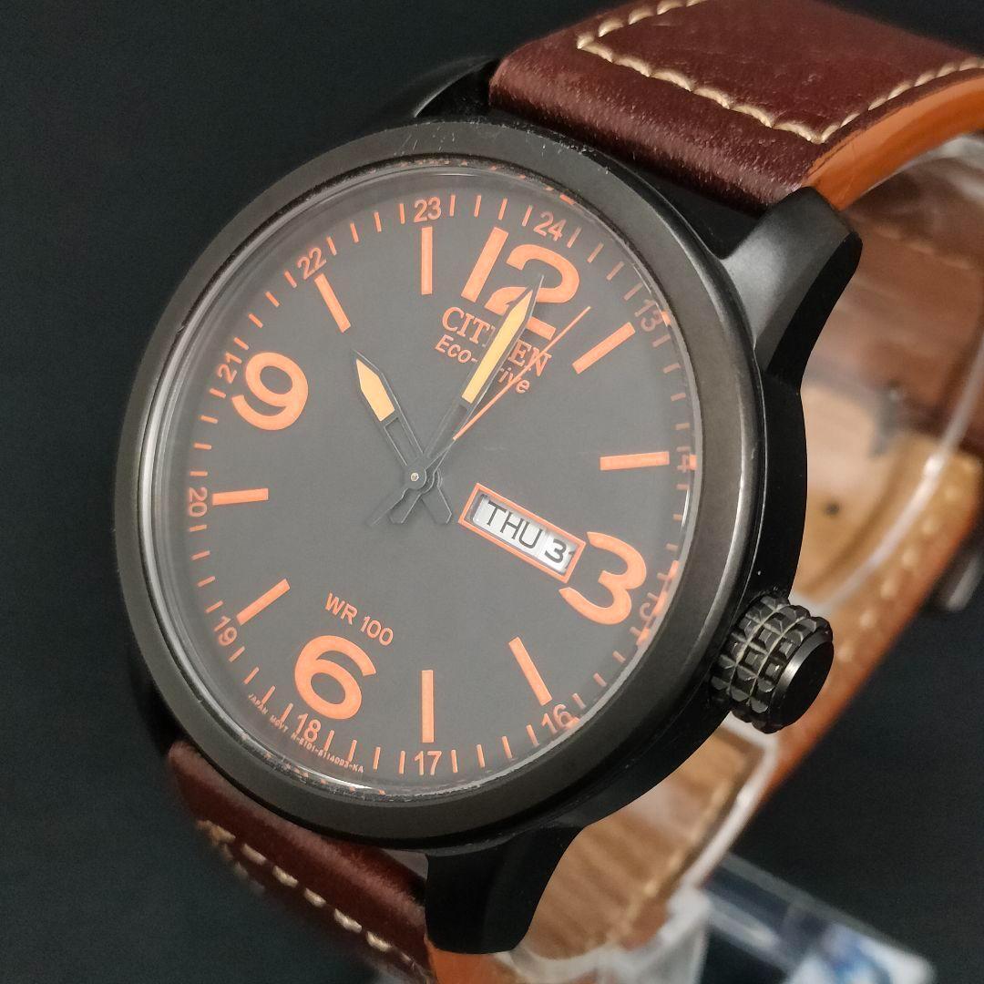 - 美品 CITIZEN シチズン ブラック オレンジ 電波ソーラー 腕時計 メンズ