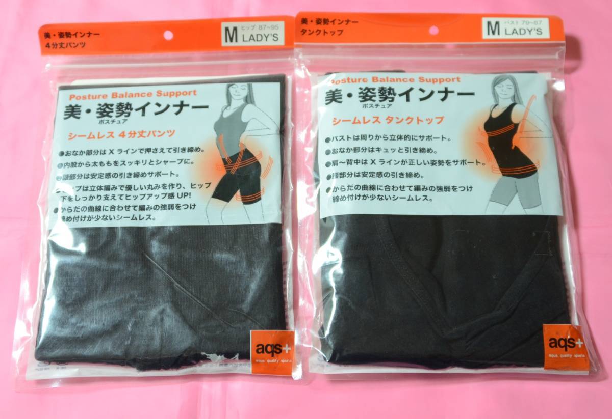 - 『送料無料』★ aqs+ 美・姿勢インナー★シームレス★タンクトップ&4分丈パンツ★上下セット★無地★黒/ブラック★Mサイズ★