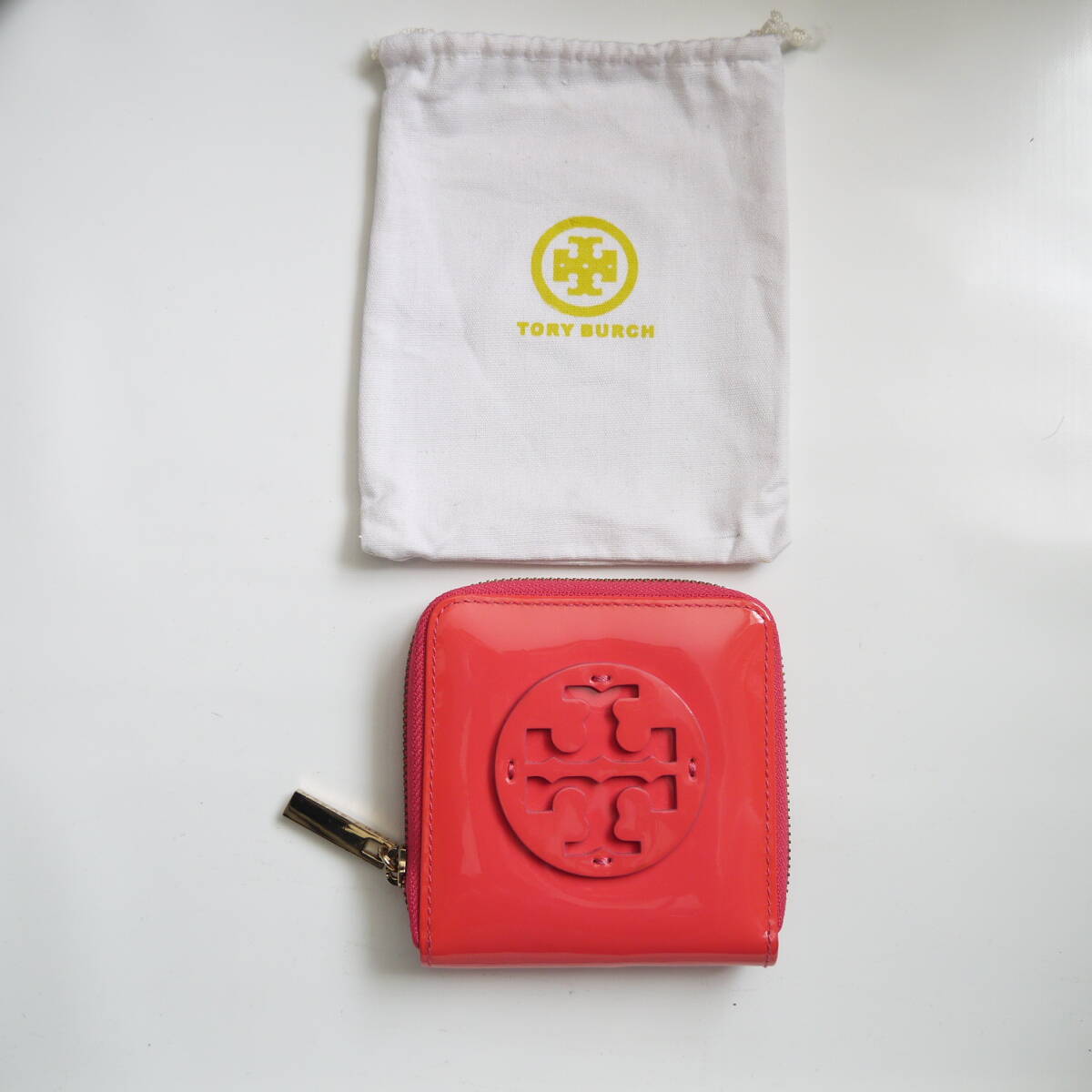 - $ 極美品 $ 袋付き♪◆ TORY BURCH ◆ トリーバーチ ◆ ラウンドファスナー 2つ折り 財布 ◆ エナメル レザー製 ◆ ストロベリーピンク系