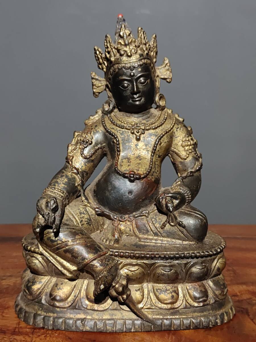 > 仏像 清代 旧蔵 純銅泥金撒朱砂造像【黄財神】 チベット古寺 銅製 銅琉金 唐物 收蔵品 時代物 古美術 古置物 希少珍品 供養品 文房具6.11