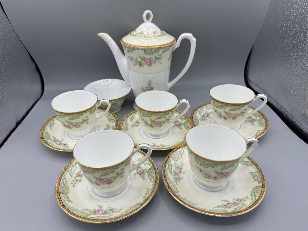 > 里帰り オールド ノリタケ 5人用 カップ&ソーサー コーヒーポット シュガーボール マルキ印 (14) カップアンドソーサー