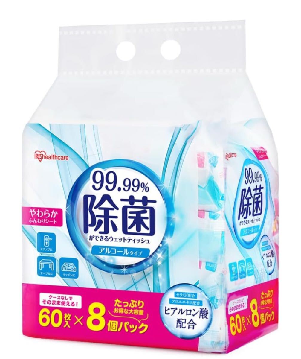 - アイリスオーヤマ(IRIS OHYAMA) 除菌ができるウェットティッシュ アルコールタイプ 480枚(60枚入×8) WTS-60A8P