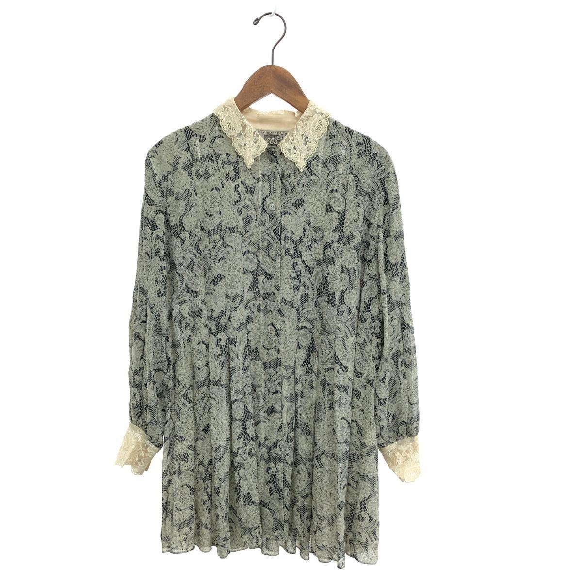 - 良好◆import Rossa インポートロッサ ブラウス チュニック サイズ:42◆ ブラック/ベージュ シルク レディース 総柄 ワンピース レース襟