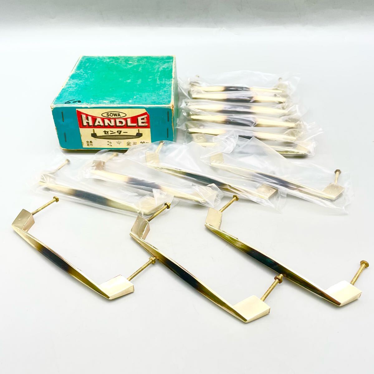 > [新品 未使用品] SOWA ソーワ ハンドル センター 中 13個 足巾約125mm 全長約140mm 金 黒 家具 戸棚 ドア 扉 取手 建具 金物屋 在庫 まとめ
