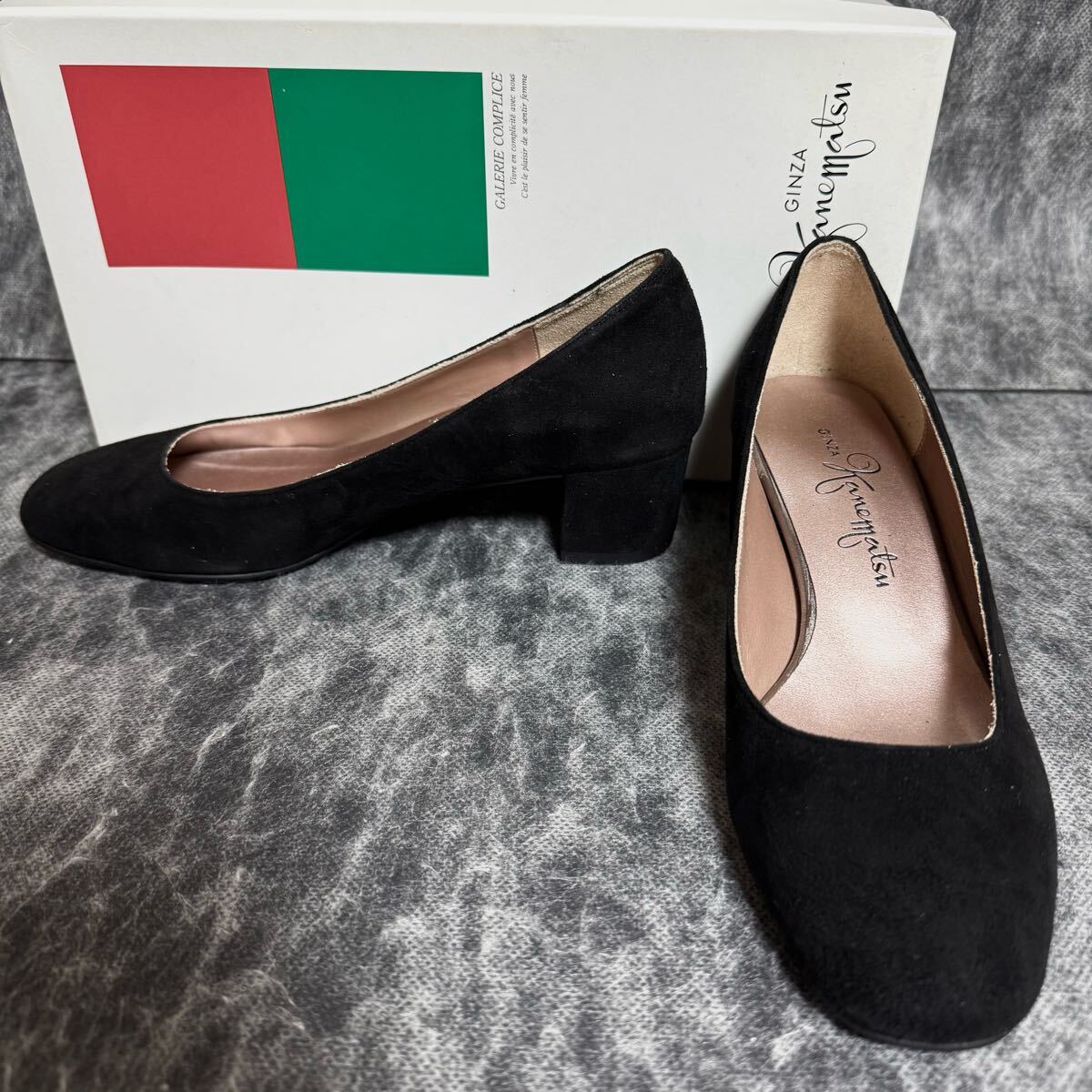 - 銀座かねまつ スエードパンプス ヒールパンプス プレーントゥ フォーマル ブラック 21.5cm *87