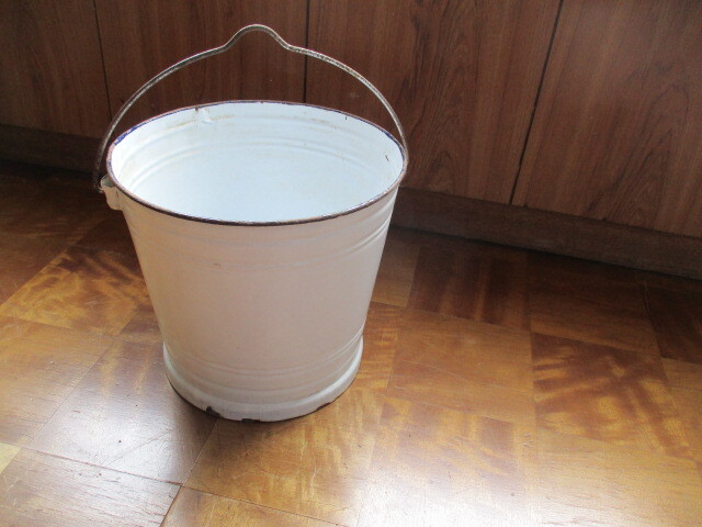 - ホーロー製バケツ琺瑯ガーデニングインテリアインダストリアルビンテージアンティークレトロ古道具