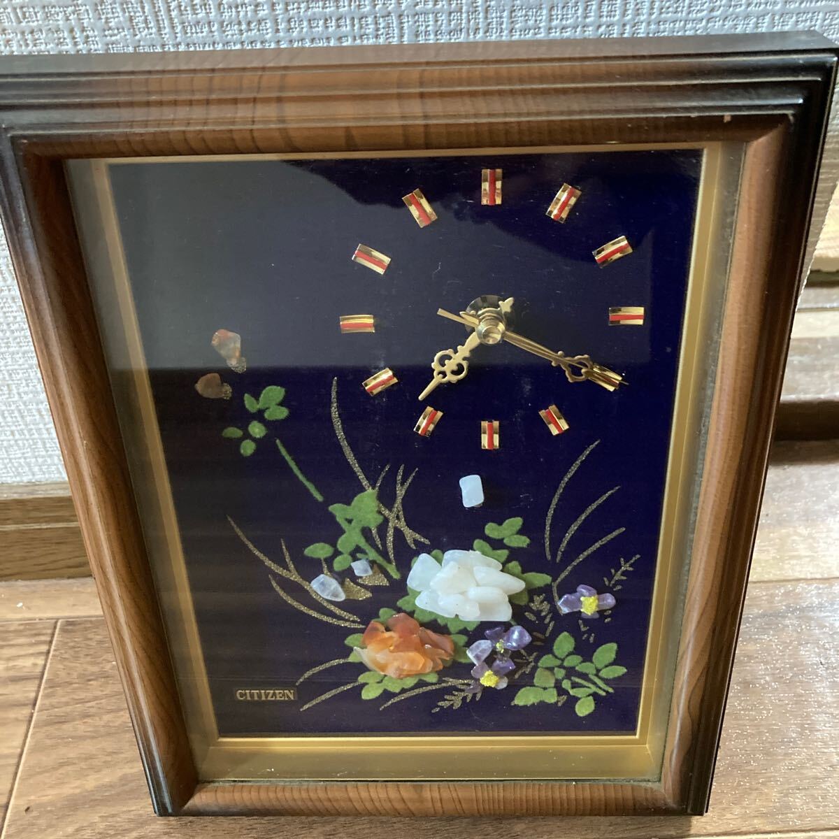 - シチズン インテリア 宝石画 花 ストーンアート 貴石画 時計 置き時計 動作未確認 可愛い 繊細 和風