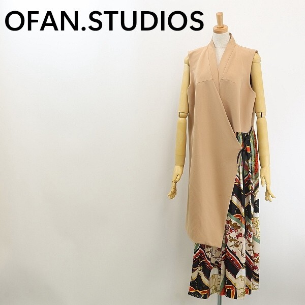 - ◆OFAN.STUDIOS スカーフ柄 異素材 切替 ロング ジレ ベスト ベージュ