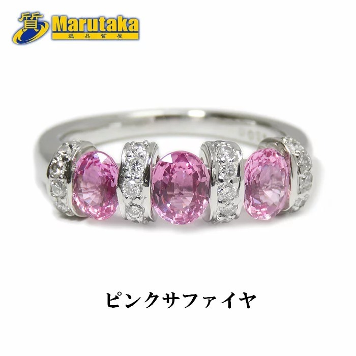 > ピンクサファイヤ ダイヤモンド プラチナ リング 10号 Pt900 D0.25ct 逸品質屋 丸高 尼崎 a1-0026
