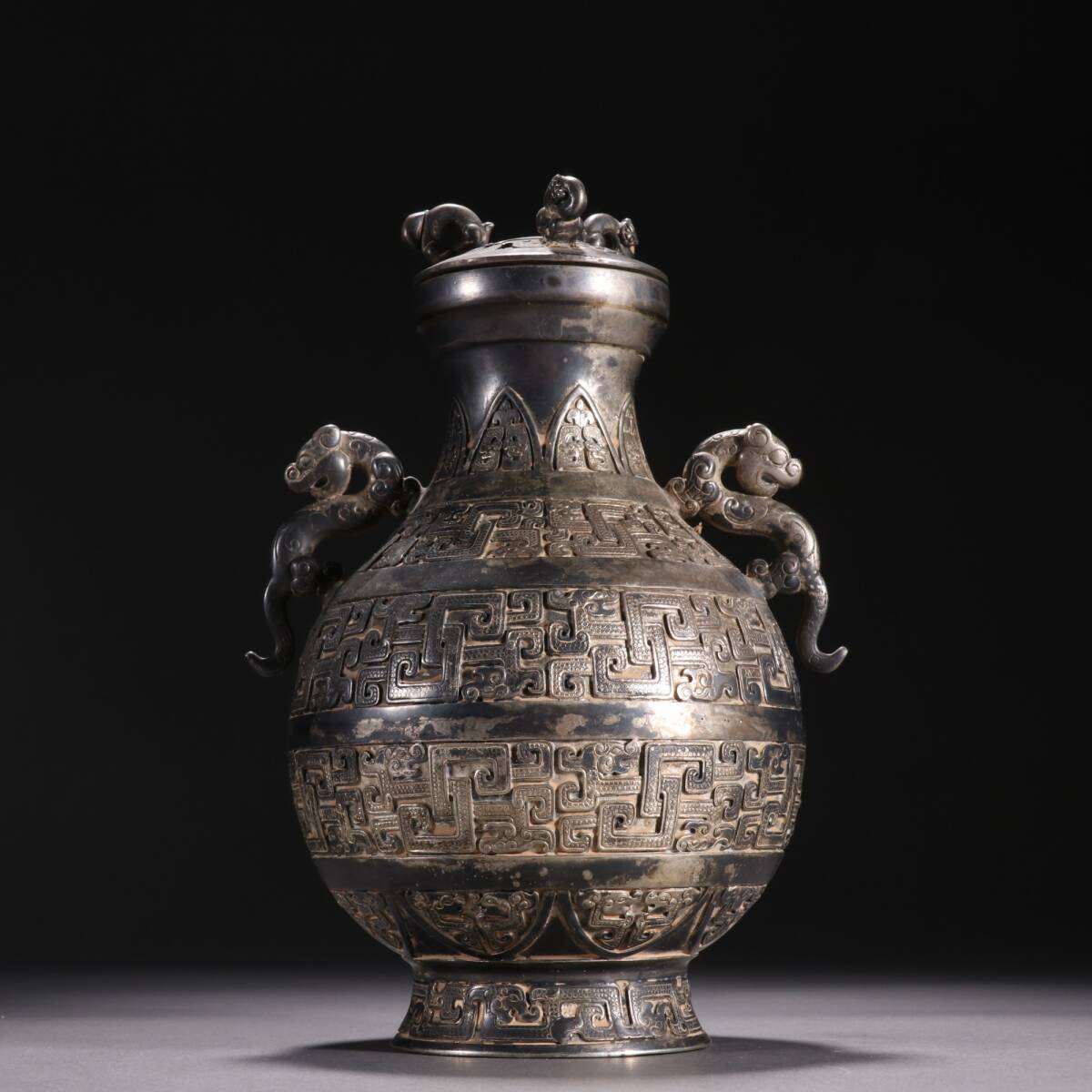- 多宝閣■ 202238 人間国宝 中国古美術 銅製品 【スターリングシルバーのドラゴンイヤー花瓶】 置物 工芸品 時代物 珍品旧蔵 伝世家珍 孤品