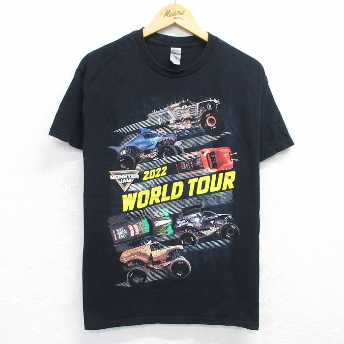 - L/古着 半袖 Tシャツ メンズ レーシングカー モンスタージャム コットン クルーネック 黒 ブラック 25jun12 中古
