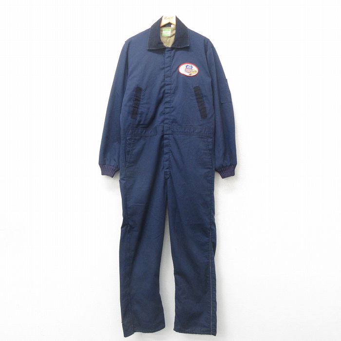 - W42/古着 シアーズ 長袖 ツナギ メンズ 80s 大きいサイズ 紺 ネイビー 25jun09 中古 オールインワン ボトムス