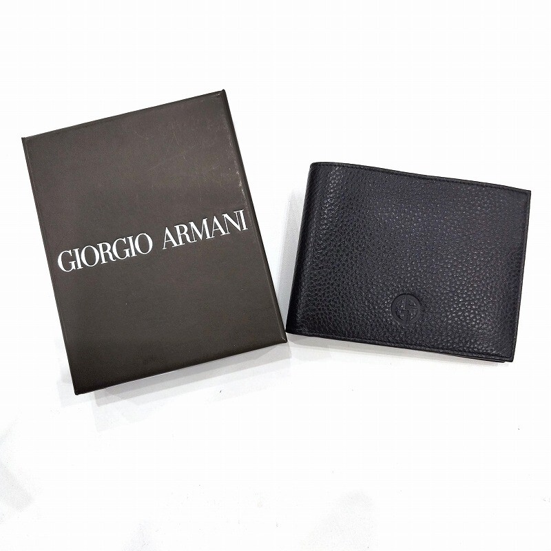 > ジョルジオアルマーニ(GIORGIO ARMANI) レザー 602 2つ折り札入れ・カード入れ ブラック 【中古】 JA-22809