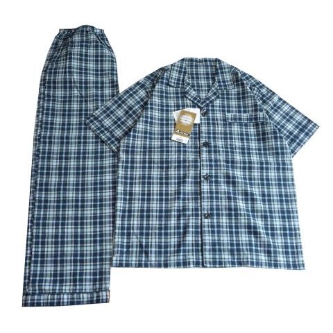 - 新品 CLOSSHI 紺 チェック メンズ パジャマ 4つのこだわり L 半袖 長ズボン クロッシー 介護 大きいボタン 紳士 寝巻 ルームウェア