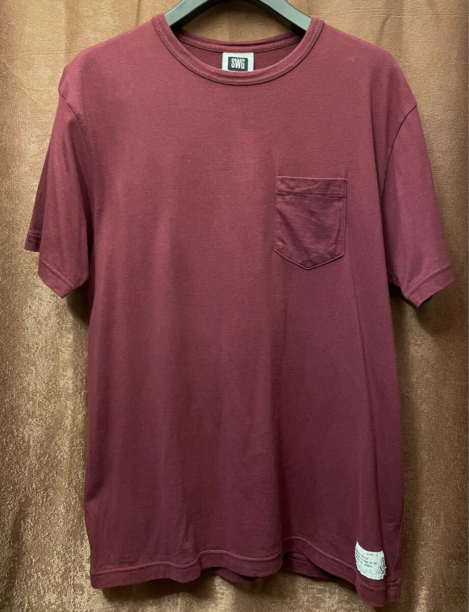> MADE IN JAPAN製 SWAGGER ポケット付き バックプリントTシャツ ワイン Lサイズ スワッガー 日本製 Tシャツ PHENOMENON フェノメノン