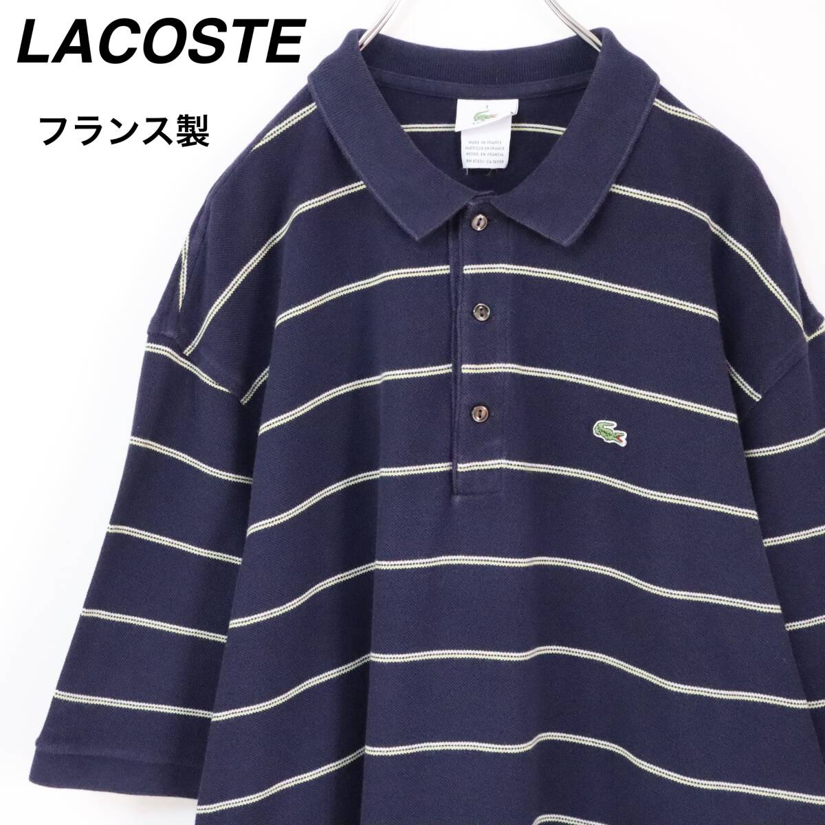 - 【フランス製】ラコステ ポロシャツ 刺繍ロゴ フレラコ 紺色 サイズ7 鹿の子
