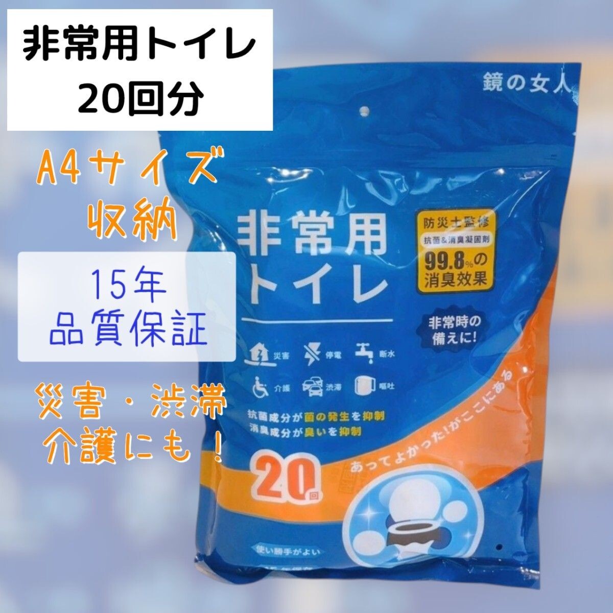 - 防災トイレ 凝固剤セット 非常用 黒白袋+手袋 完全同数 15年保存 42秒固化 20回 車中泊 介護対応 A4サイズ収納 災害 渋滞 吊るし