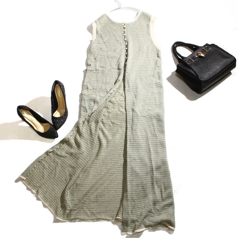 > ミックスカラー ノースリーブ ロングニットカーディガン F グリーン 緑 淡い 2way ロングワンピース ロングベスト アクリル コットン