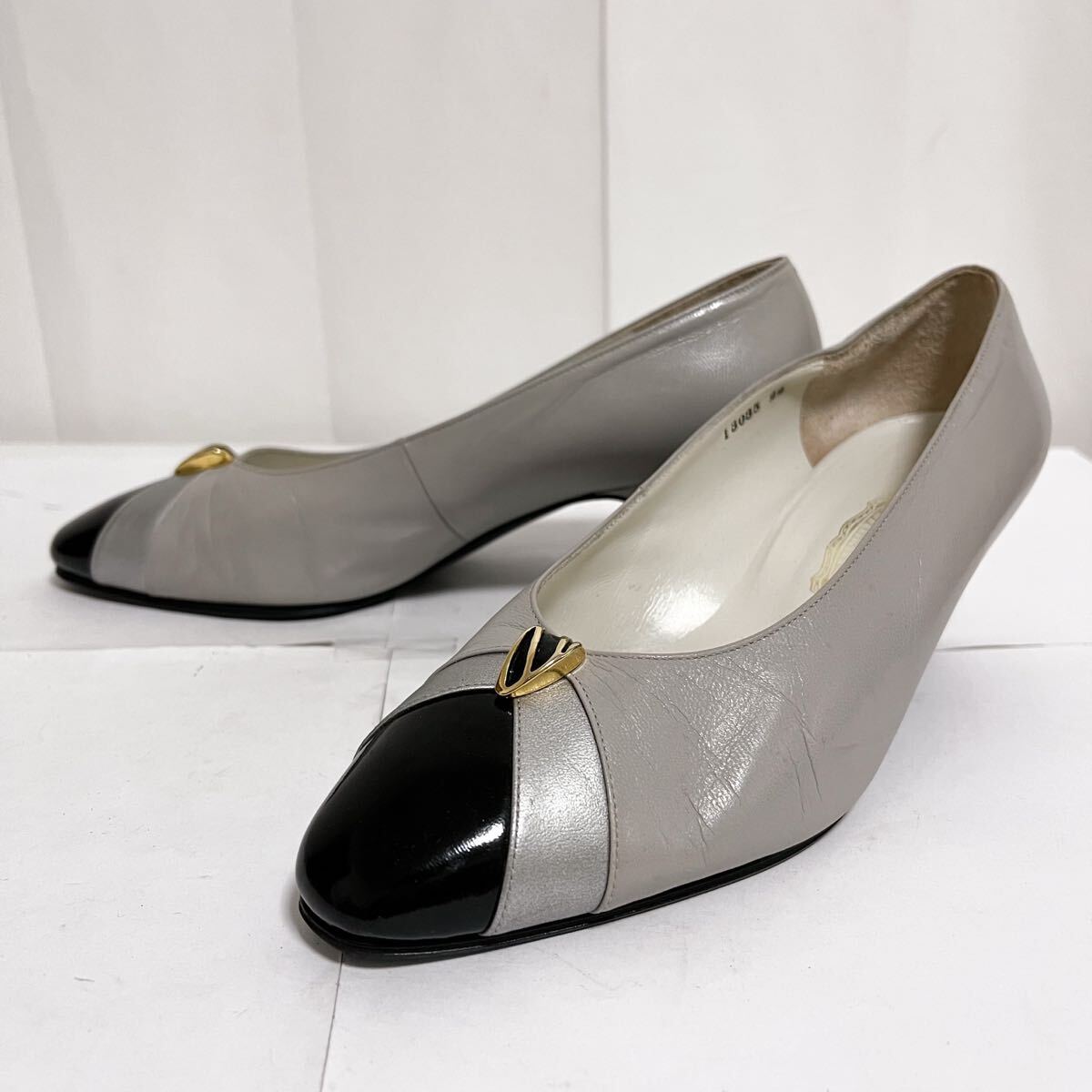 > 和758★ GINZA yoshinoya 銀座ヨシノヤ レザー パンプス ヒール シューズ 22 グレー ブラック レディース