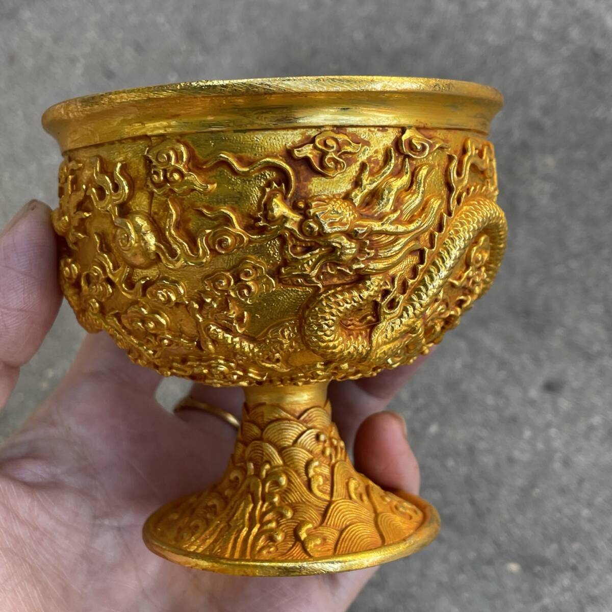 - 蔵友旧蔵出 銅製 塗金 盤龍紋 供杯 希少珍品 貴重品 置物 古賞物 中国古玩 中国古美術品