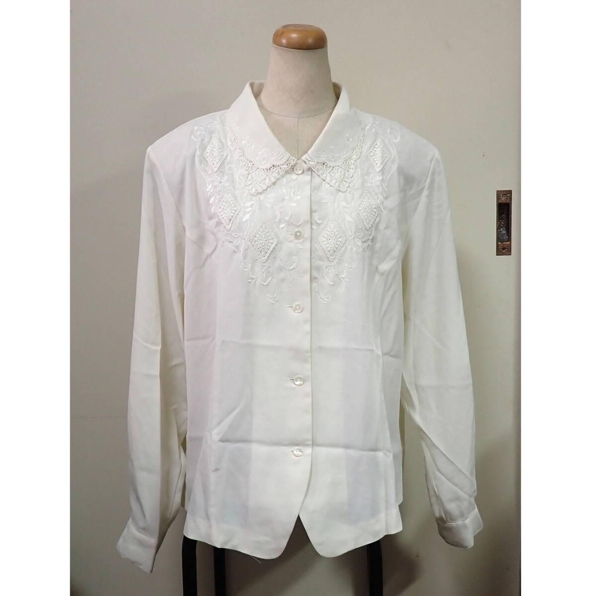 - 【BURBERRYS オールドバーバリー 長袖レース刺繍ブラウス白C 15号】オフホワイト 無地 シャツ ビンテージ 90年代 ブランド古着