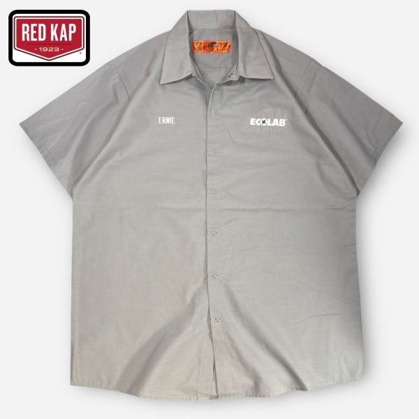 > ★美品★ECOLABロゴ刺繍★RED KAP 半袖ワークシャツ sizeL スナップボタン 古着 クリーニング プレス済み 2267