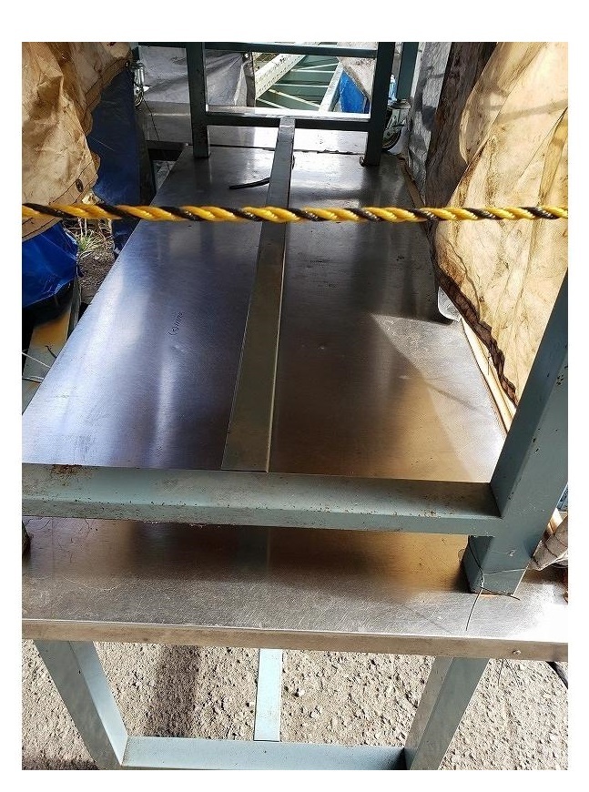 - C3A【新長イ茨城弁030104-12有】作業台 ステンレス板張り 1.8X800m位