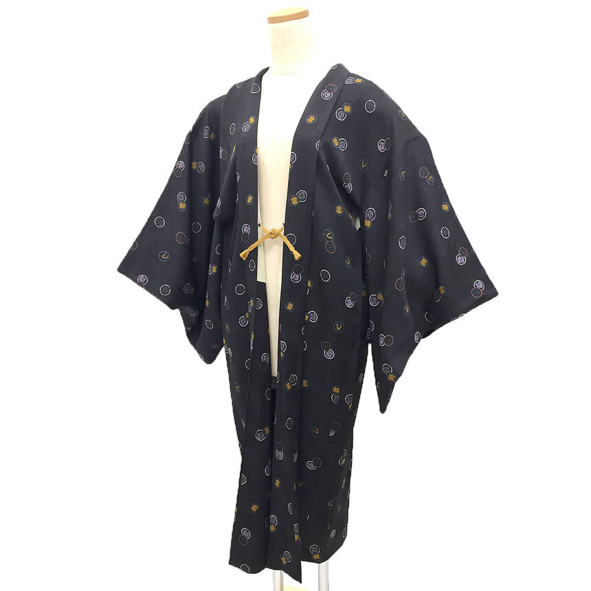 - 京やM425 正絹 長羽織 和装コート ロング丈 着物コート 羽織 道中着 袷仕立て 重ね丸文様 道行 絹100% 身丈110cm以上 裄68cm以上