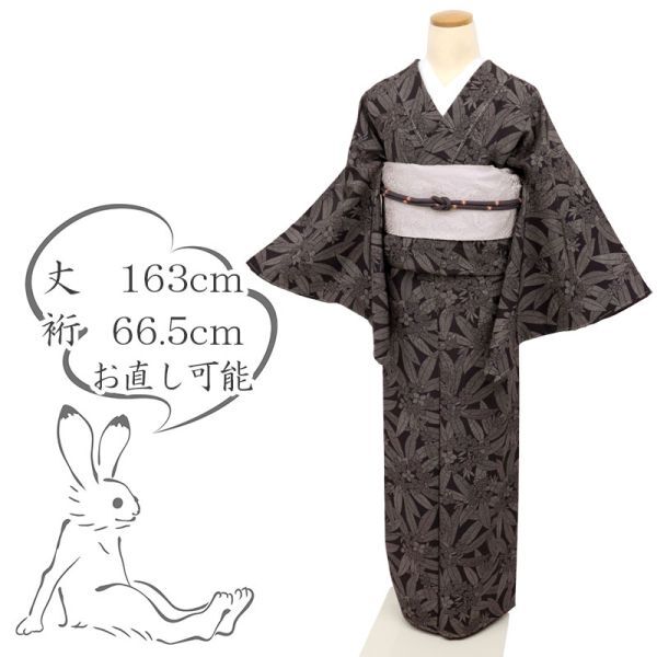 - 【江戸小紋】 長尺 夾竹桃に細やか寄せ柄小紋 黒紫色 袷正絹着物 KP4-30