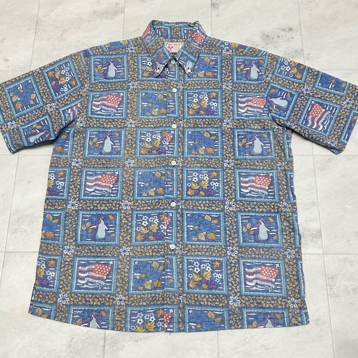 - 90s MERRY GARDEN by SUNWEAR HAWAII 柄合わせ 星条旗 ペンギン 花柄 ビンテージ アロハシャツ