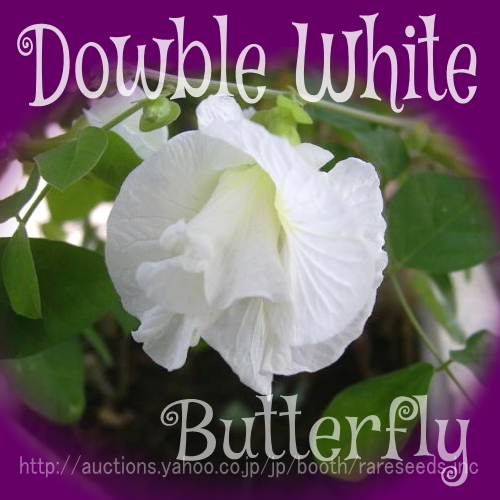 - 激レア! 八重咲の白蝶! ダブルレイヤーホワイトバタフライピー 種子 5粒 +発芽説明ラベル γ **ц** ⑧