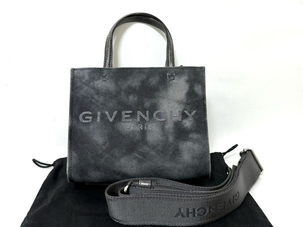 - 使用わずか極美品】ジバンシー GIVENCHY Gトート ミニ ウォッシュドキャンバス ダークグレー ブラック ハンドバッグ ショルダーバッグ