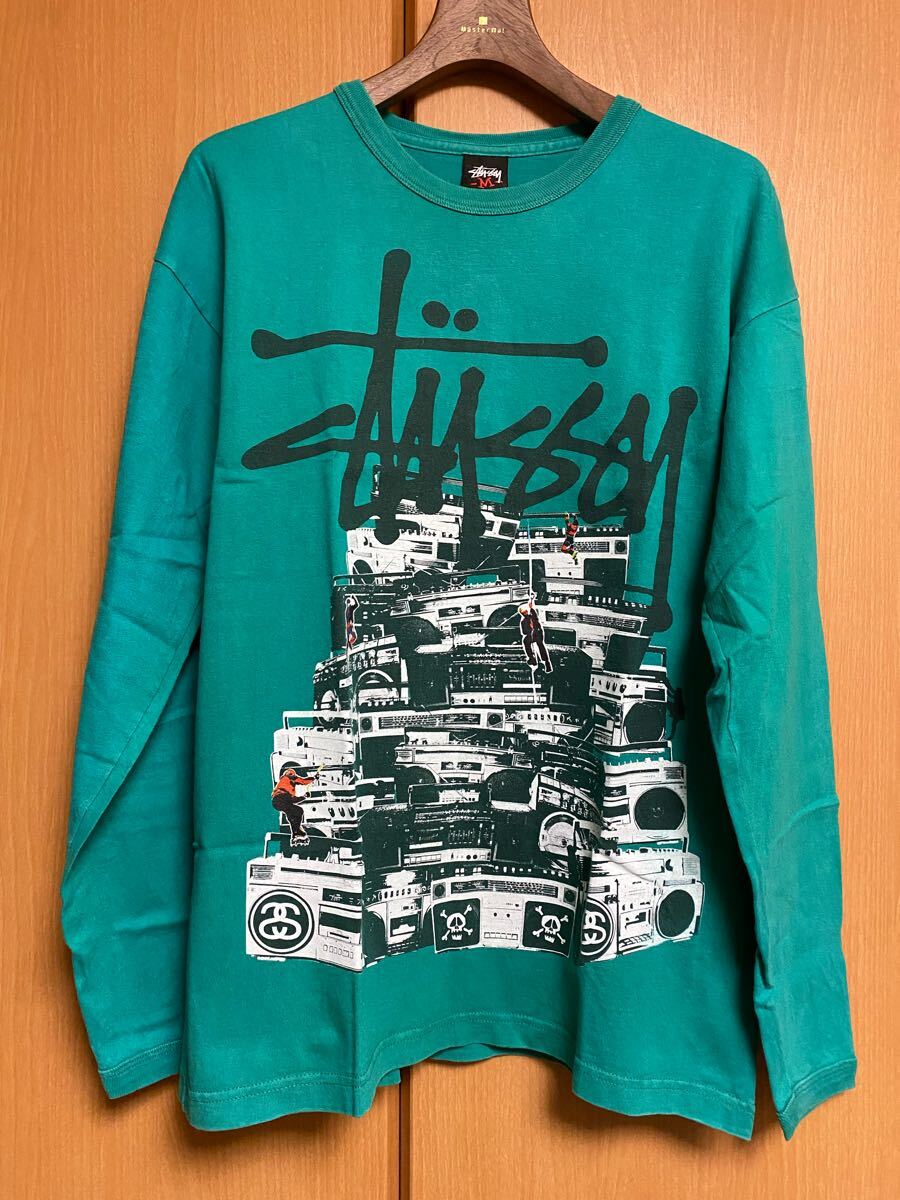 - STUSSY 長袖 Tシャツ ステューシー ラジカセ沢山 Mサイズ 緑 古着