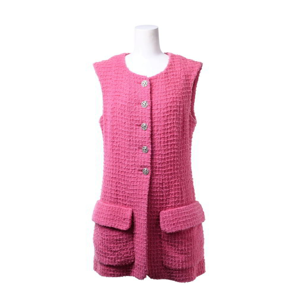 - CHANEL 22S P72576 ツイード ロング ベスト ココマークボタン5個付き 34 ピンク シャネル KL4BS2UK71