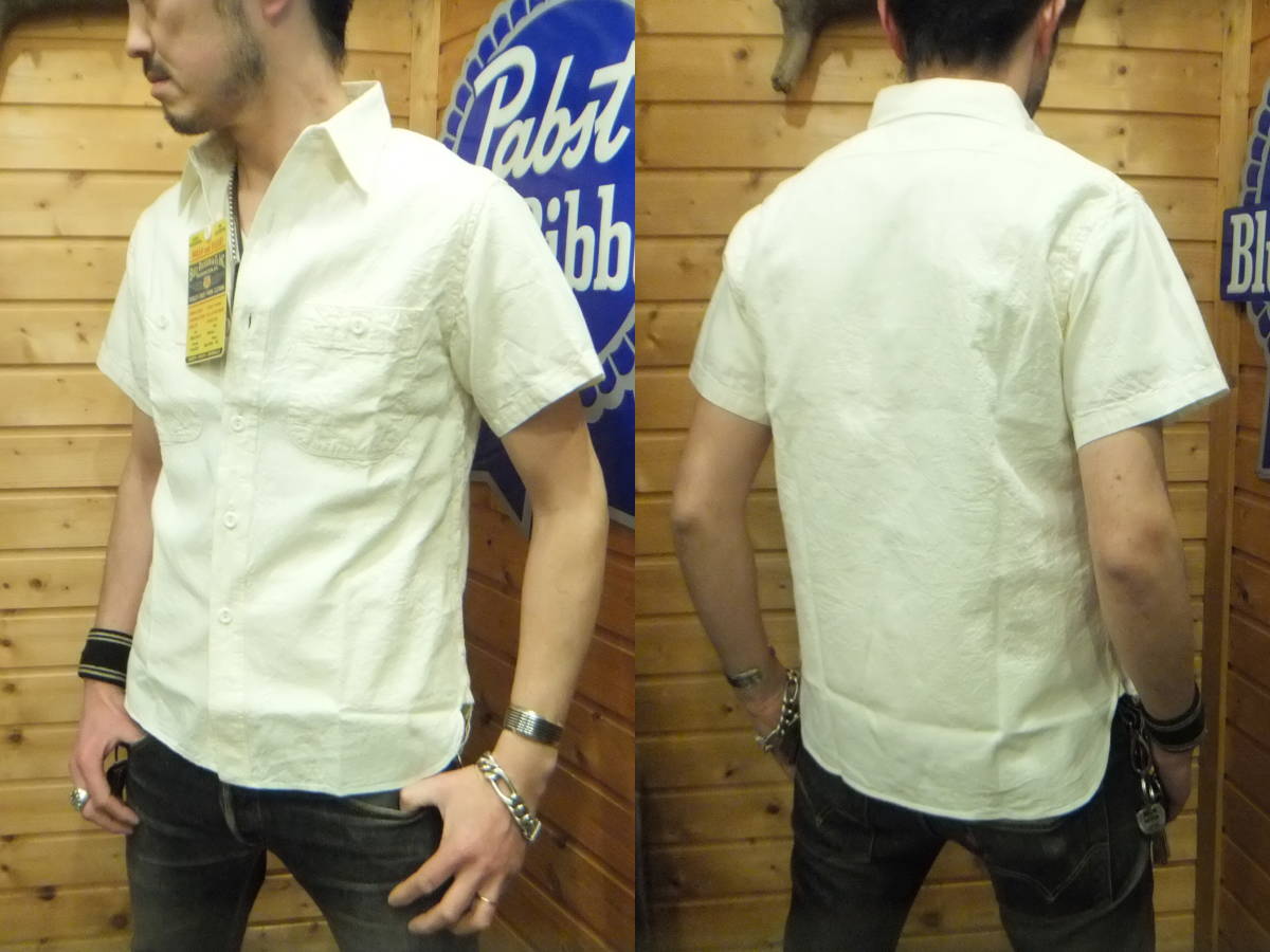- 東洋バズリクソンズ正規店 年間定番シリーズ BR35857-105 セルビッジ生地シャンブレー半袖シャツ[オフ白=クリーム色系][17=XL]送料無料!