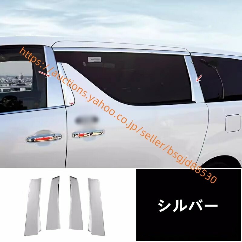 > トヨタ・アルファード/ヴェルファイア 30系 サイドドア ウィンドウ ピラー パネル ステンレス製 4P 5350