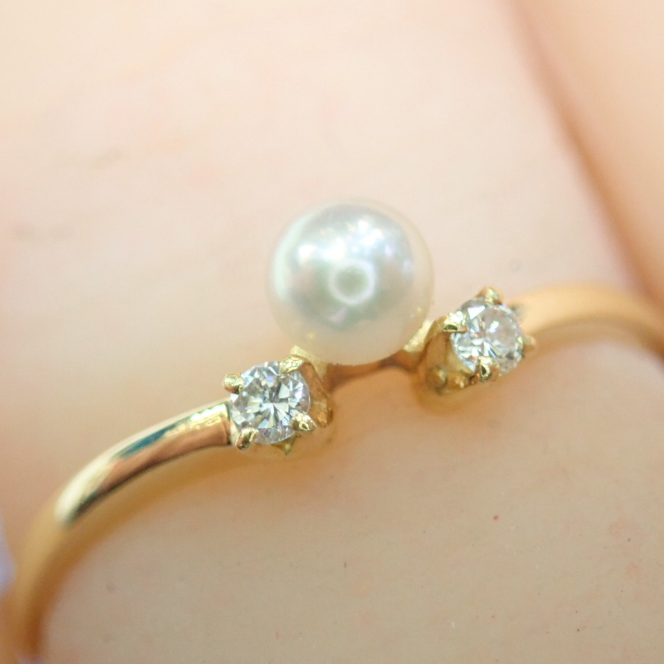 > ■K18YG ミキモト あこやベビーパール&ダイヤモンドリング 約3.5mm■MIKIMOTO■アコヤパール 本真珠■指輪■中古磨き仕上げ■