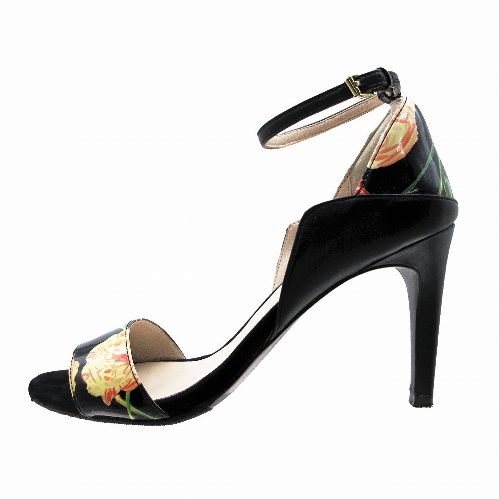 - COLE HAAN コールハーン 花柄 オープントゥ パンプス ヒール シューズ 靴 サイズ6.5B 23.5cm ブラック 黒 レディース 【中古】