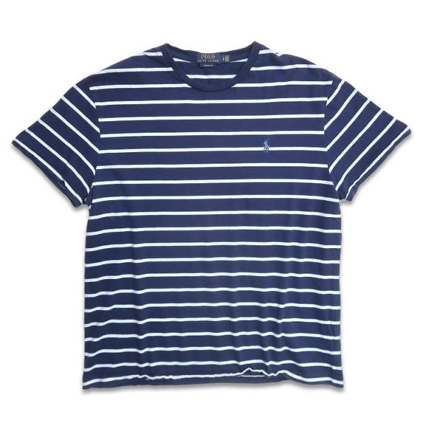- 古着 ラルフローレン Polo Ralph Lauren ワンポイント ボーダー Tシャツ ネイビー ライトブルー 表記:L gd406370n w50618