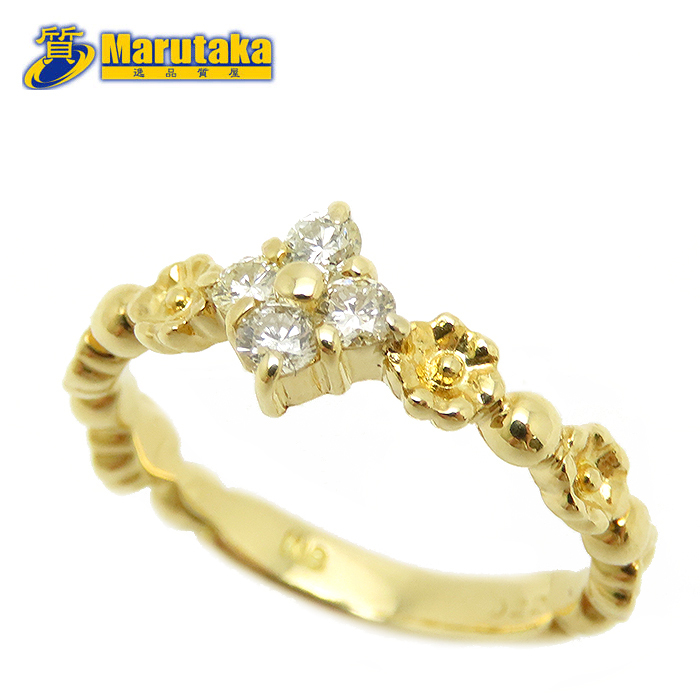 - フラワーモチーフ ダイヤモンド イエローゴールド リング 9号 花型 細工 逸品質屋 丸高 尼崎市 Flower