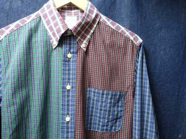 > ブルックス ブラザーズ クレイジーパターン 切替 長袖 コットン チェック ボタンダウン シャツ S / BROOKS BROTHERS アメリカ 古着 / 17