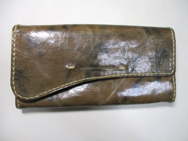 - 訳アリ 新品 財布 キャサリンハムネット 長財布 かぶせ レディース メンズ ブランド 本革 牛革 豚革 手染め総手縫い