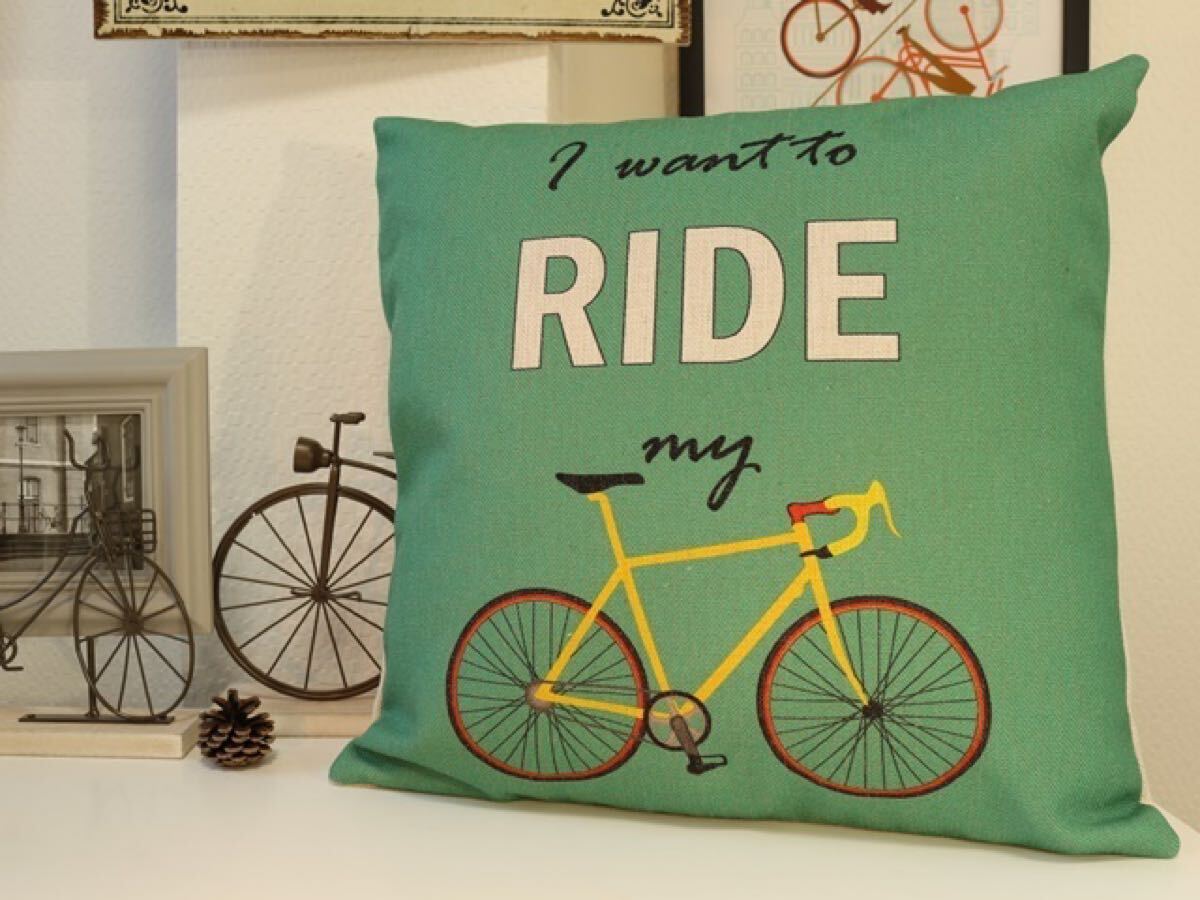 - クッションカバー 43×43 北欧 自転車柄 かわいい ロードバイク 可愛い柄 ROAD 観戦 リビング おしゃれ 居間 ソファー【縫製訳あり】