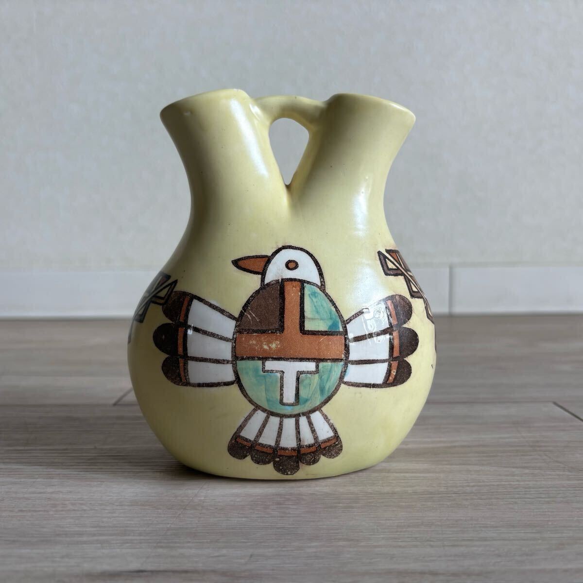 - アメリカビンテージ セラミック製 ネイティブアメリカン ウエディングベース 花瓶 オブジェ