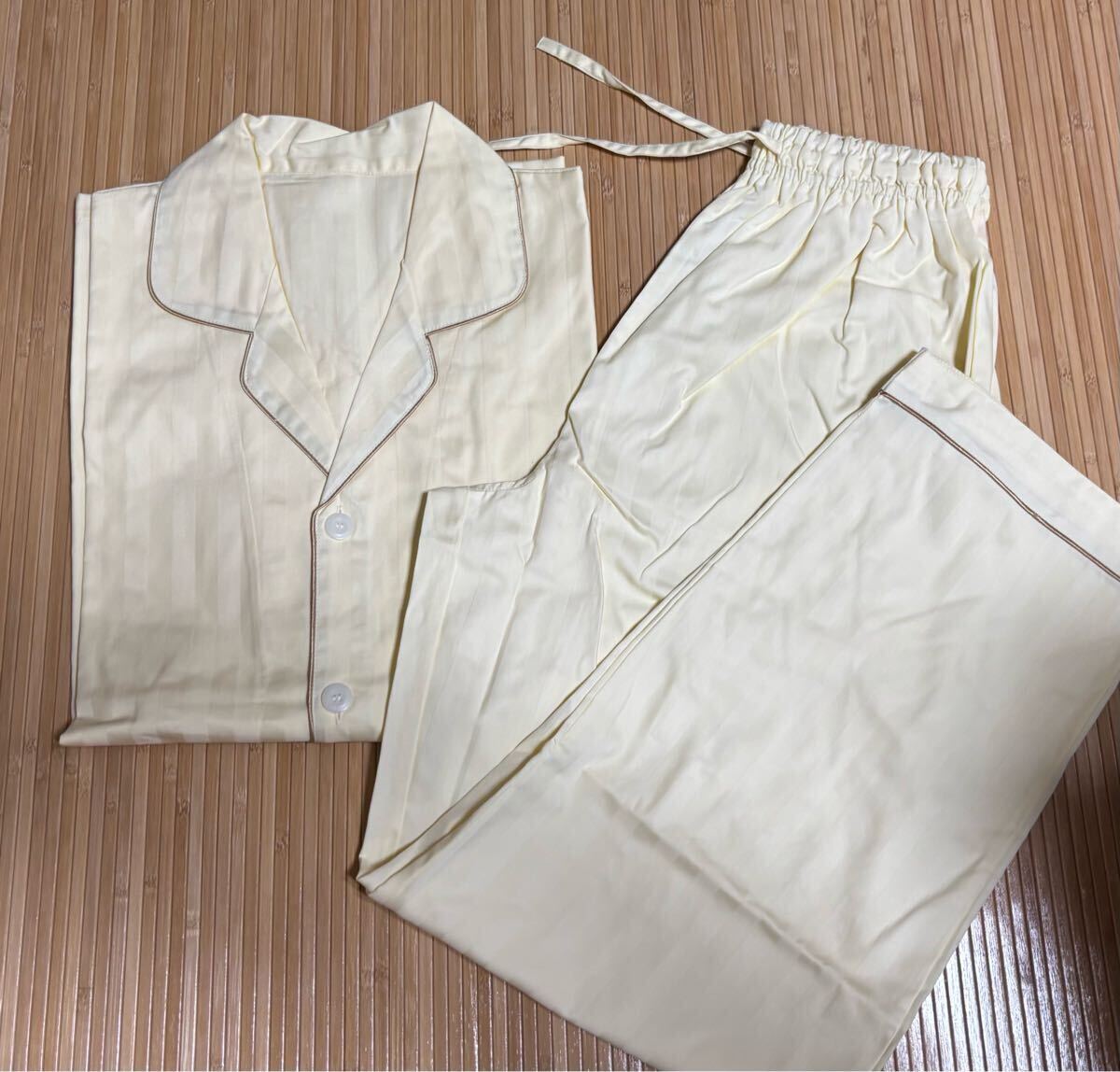 - ■新品・黄色系しっかり生地紳士パジャマ七分袖フリーF■